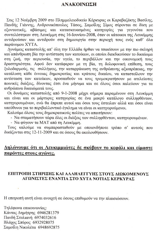 ΔΙΚΕΣ ΓΙΑ ΤΑ ΓΕΓΟΝΟΤΑ ΤΗΣ ΛΕΥΚΙΜΜΗΣ